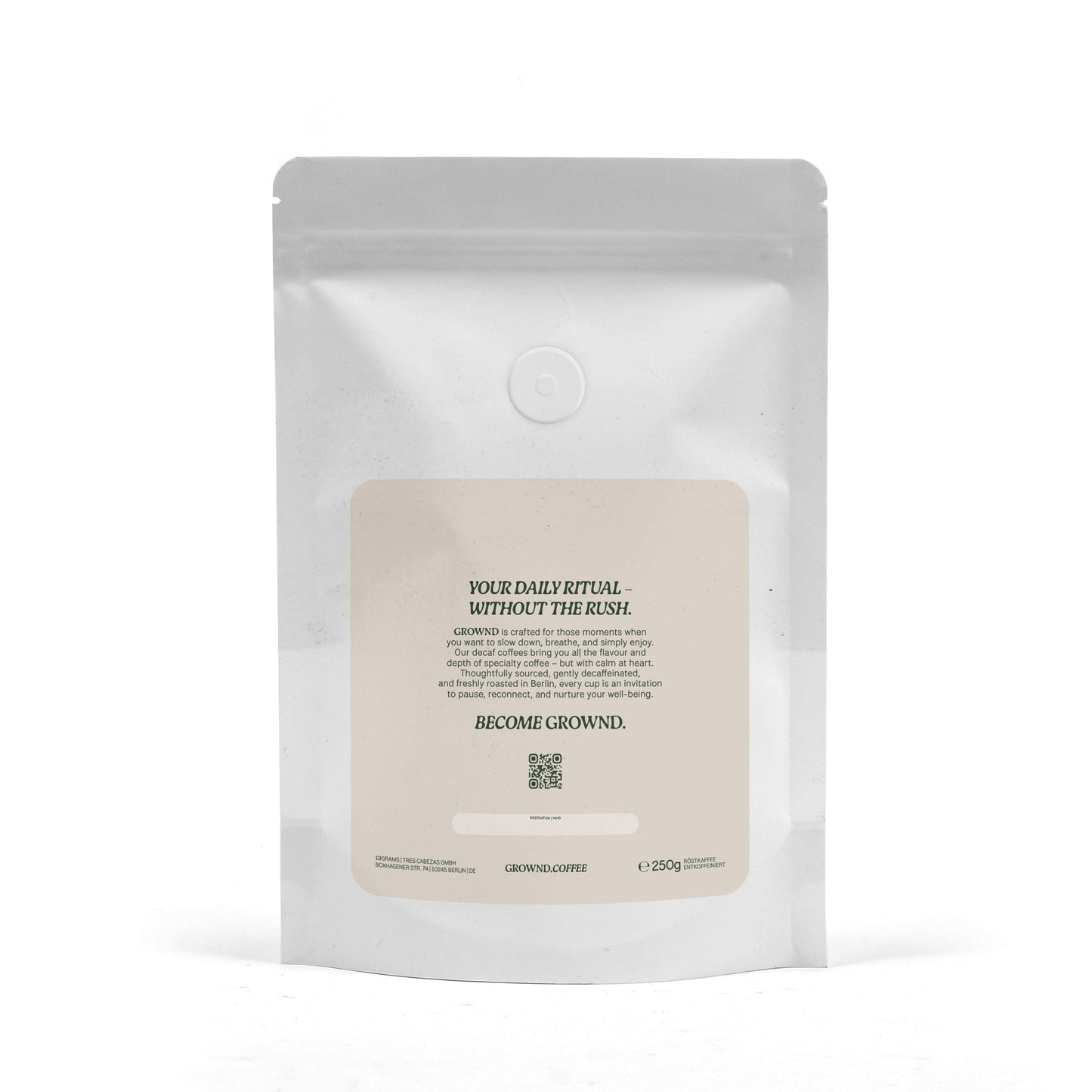 GROWND coffee package with a yellow label on a white background